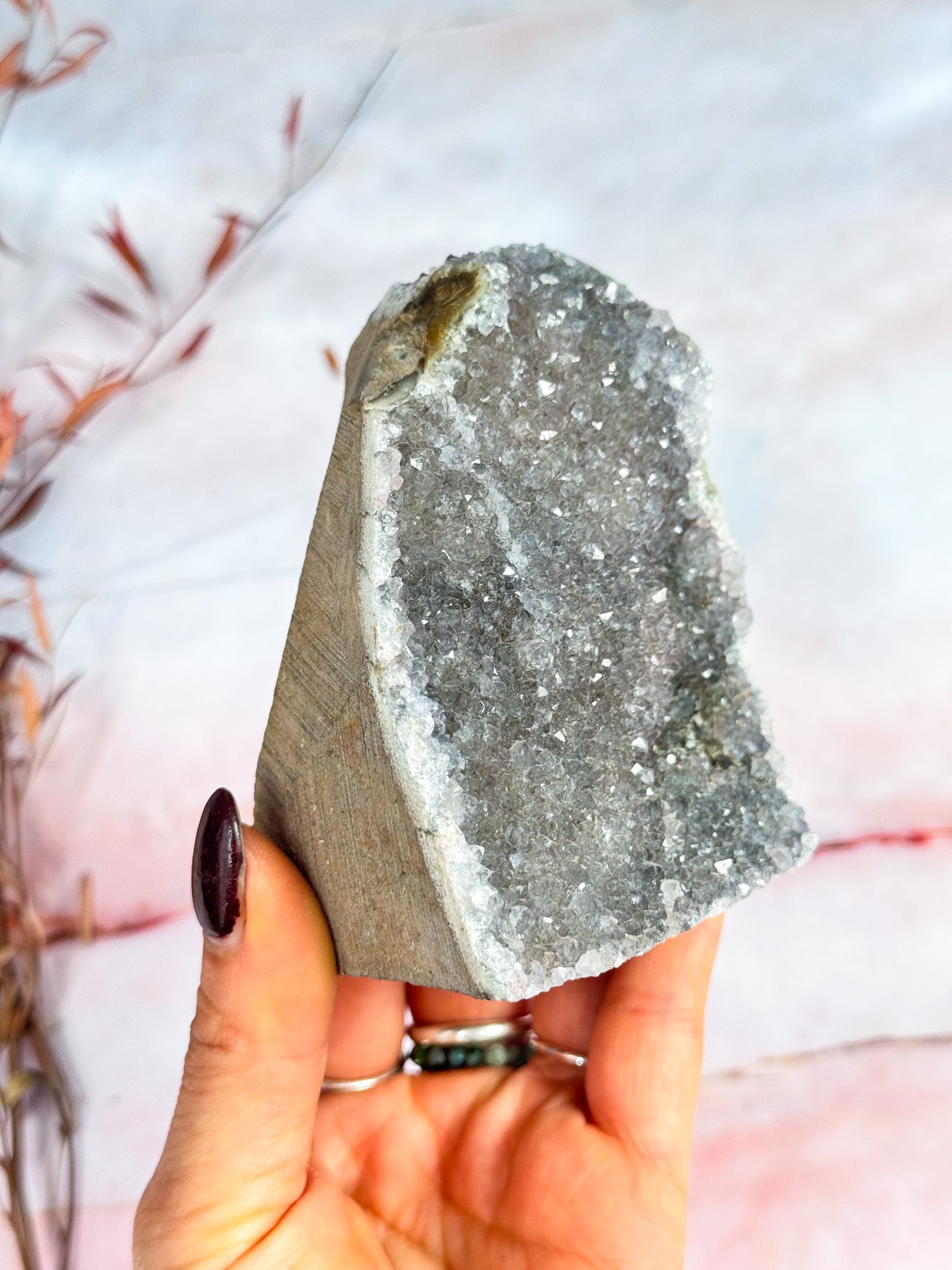 Embrace the magic of this gorgeous low-grade amethyst cluster—nature's own little purple powerhouse! With its self-standing base, this beauty finds its perfect spot on any shelf, desk, or altar without needing a stand. Each cluster boasts unique formations and colour variations, making it a one-of-a-kind treasure. Perfect for crystal lovers, meditation spaces, or anyone who appreciates the raw, authentic charm of genuine amethyst. Let this purple gem bring a touch of natural wonder to your world.