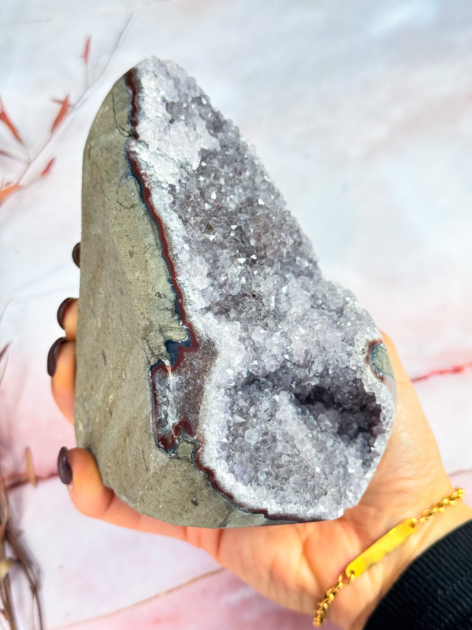 Embrace the magic of this gorgeous low-grade amethyst cluster—nature's own little purple powerhouse! With its self-standing base, this beauty finds its perfect spot on any shelf, desk, or altar without needing a stand. Each cluster boasts unique formations and colour variations, making it a one-of-a-kind treasure. Perfect for crystal lovers, meditation spaces, or anyone who appreciates the raw, authentic charm of genuine amethyst. Let this purple gem bring a touch of natural wonder to your world.