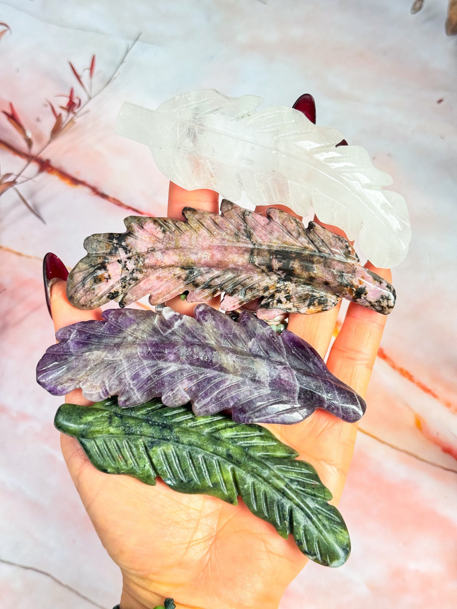 Discover the magic of our large Crystal Feather Carvings, each handcrafted from stunning crystals that catch the light just right. These whimsical feathers add a playful sparkle to any space, making them perfect for gifting or brightening your own collection. With a variety of crystals to choose from, find the one that speaks to your soul and brings a touch of enchanted charm to your world.