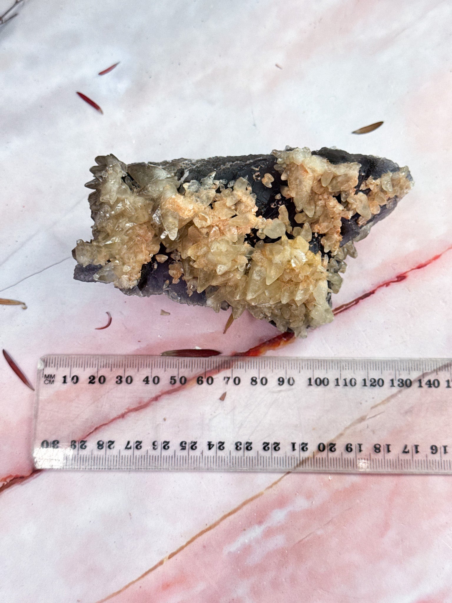 Discover the wild side of mineral collecting with this stunning purple fluorite specimen, adorned with striking wolf-tooth calcite clusters from Pakistan. Each piece showcases nature's artistry—deep violet fluorite paired with sharp, geometric calcite formations that resemble nature's own fangs. Perfect for crystal enthusiasts, collectors, and anyone who appreciates the raw beauty of geological treasures. These specimens make captivating display pieces that spark conversation and wonder. A truly one-of-a-kind addition to your mineral collection that celebrates the untamed elegance of the earth.