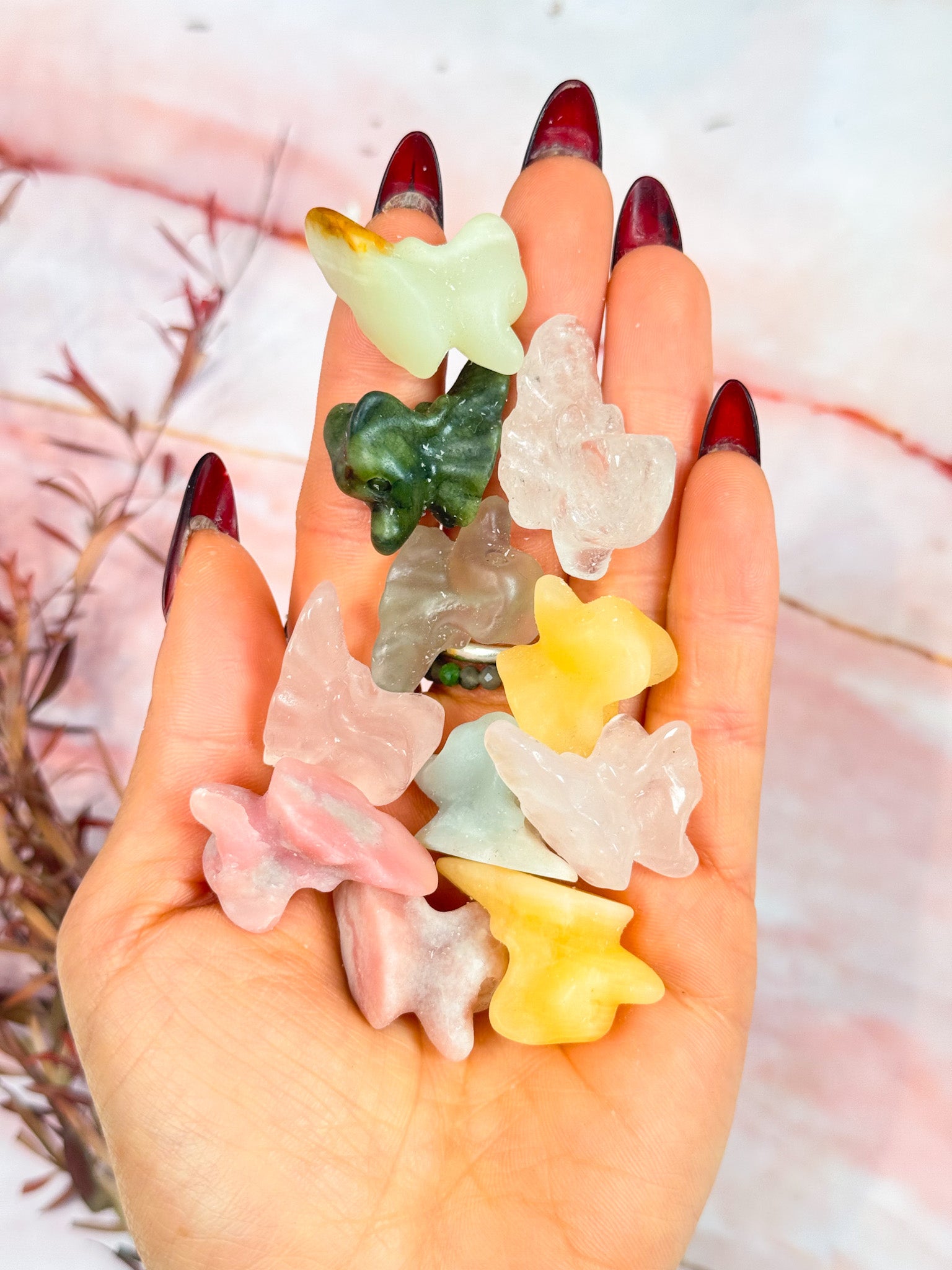 These adorable Ghost dog (Zero) Carvings bring a whimsical charm to any space. Each crystal cat features playful, ghostly details that capture a mischievous spirit while showcasing smooth, polished craftsmanship. Perfect for collectors or as a unique gift, these little spectral dogs add a lighthearted touch to your crystal collection.