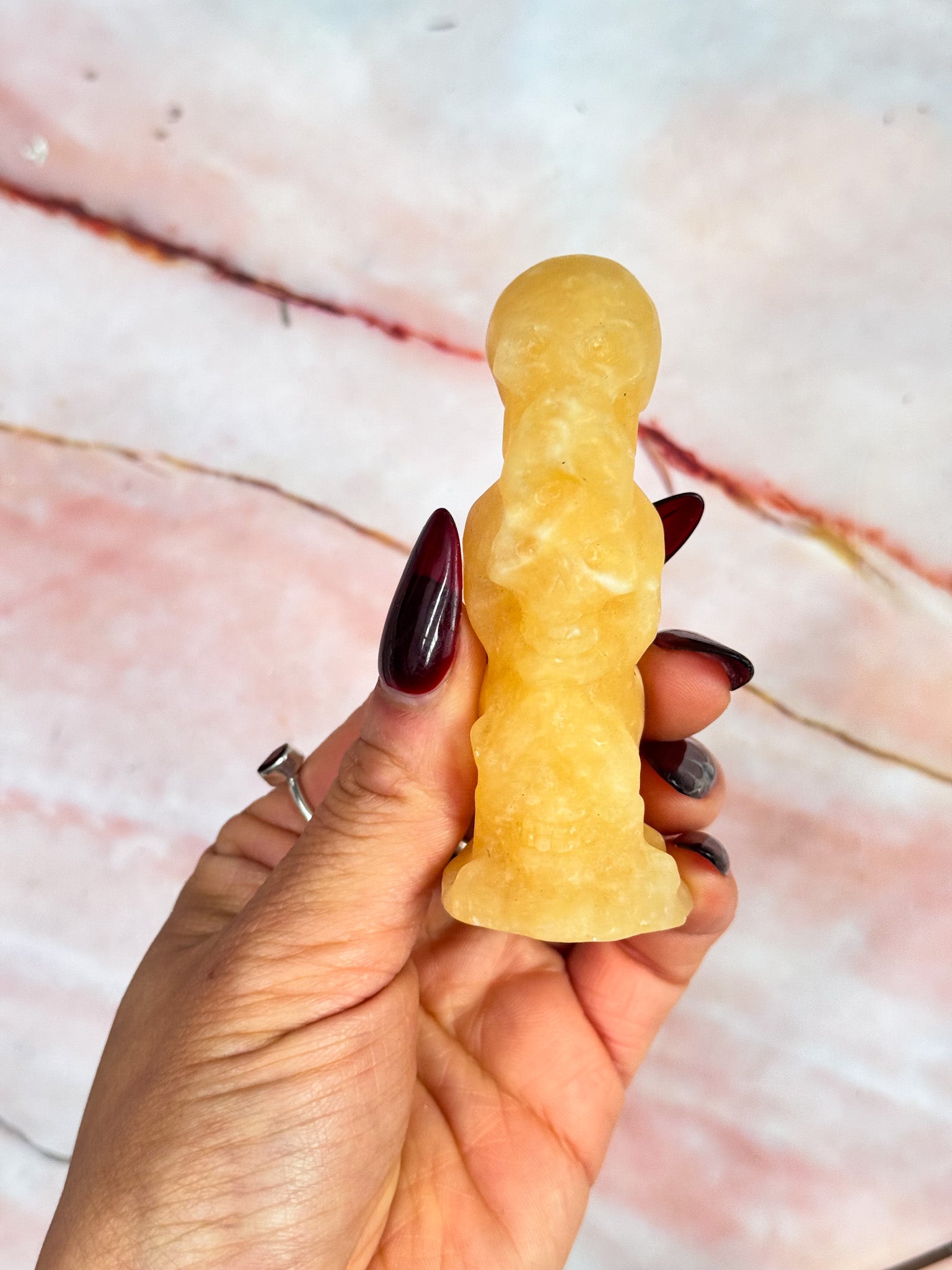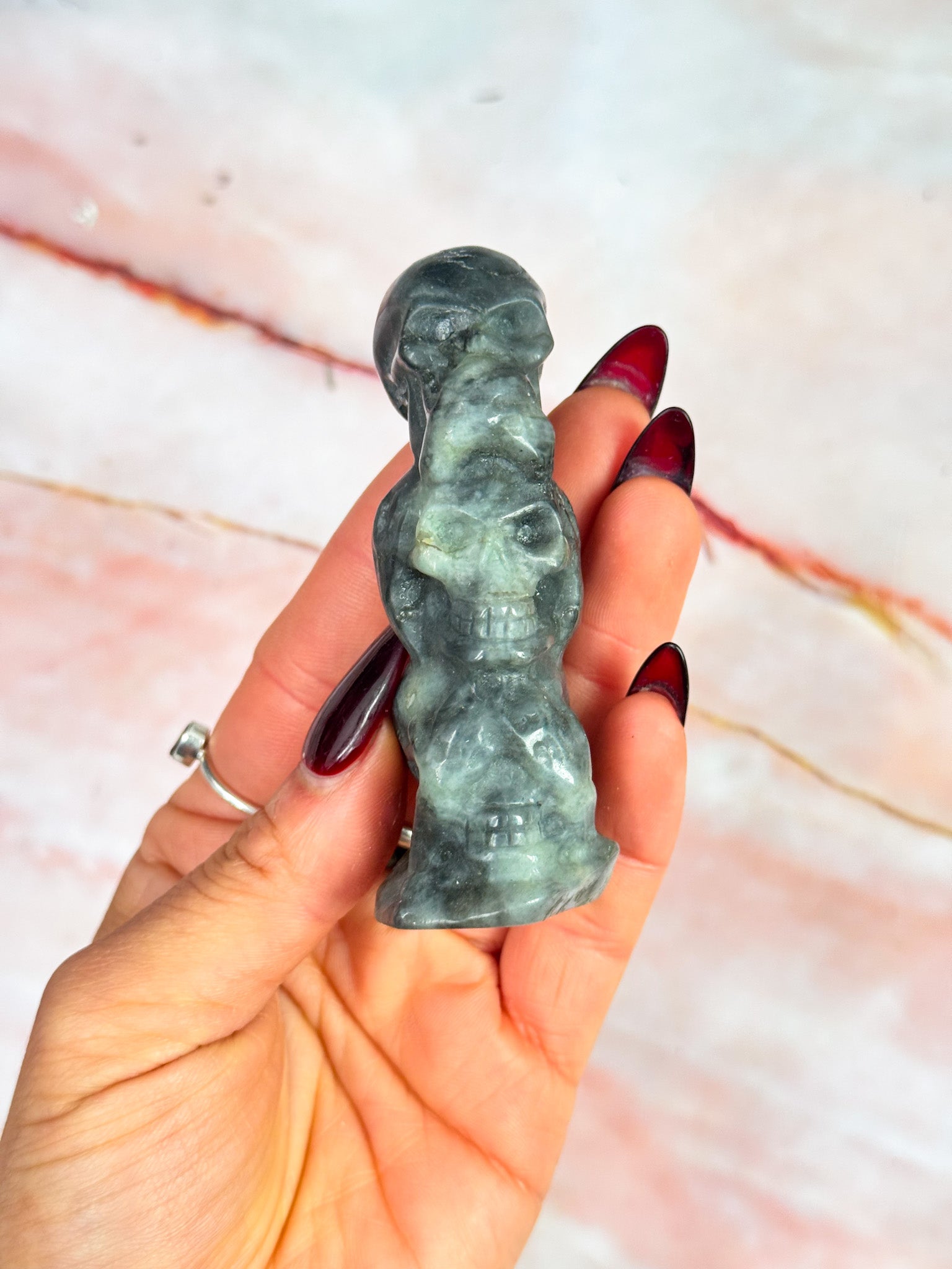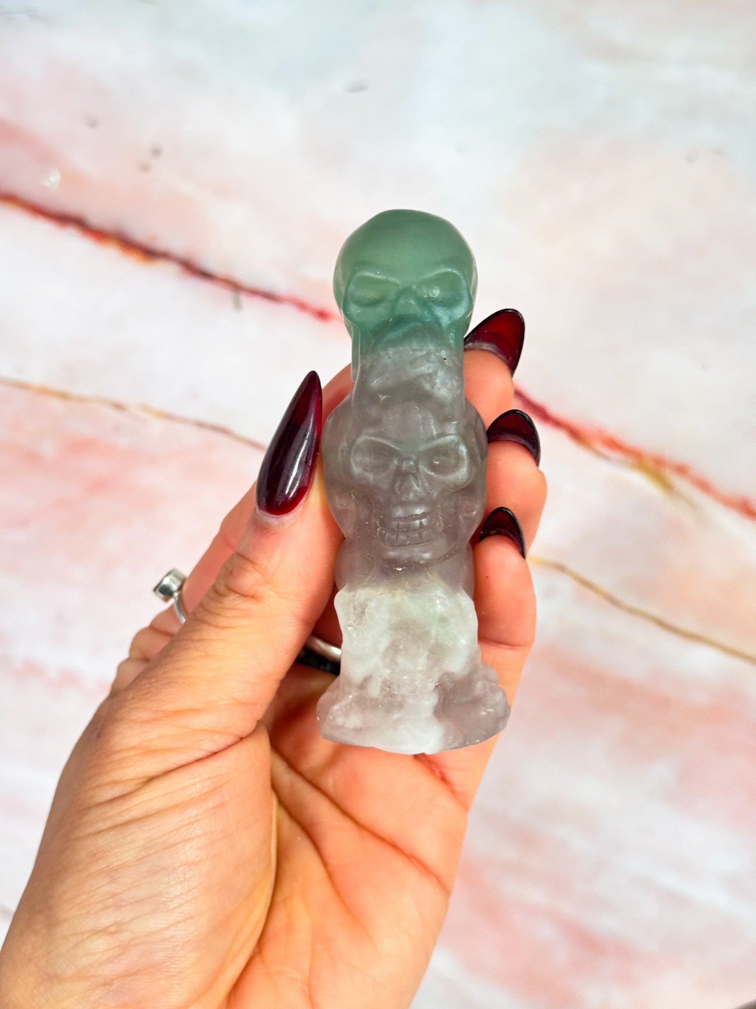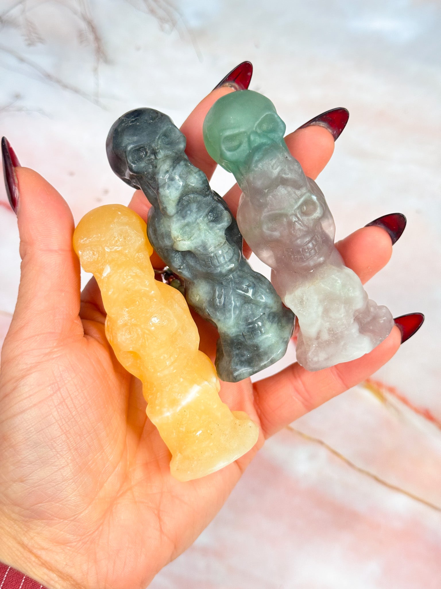 Bring a playful edge to your decor with these funky stacked skulls inspired by the classic Hear No, See No, Speak No Evil motif. Each skull expresses a different gesture, creating a quirky trio that adds personality to any space. Perfect for those who love unique, conversation-starting accents with a touch of whimsy.