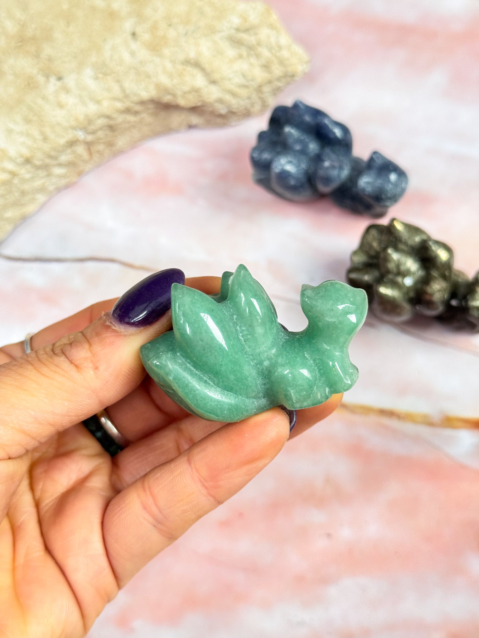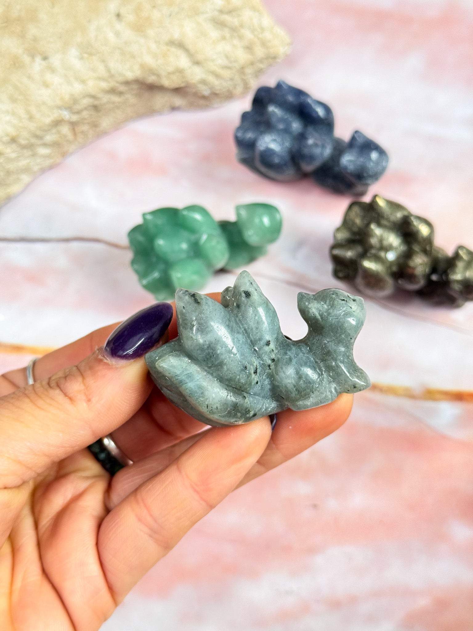 These charming Kitsune carvings capture the playful spirit of the mythical nine-tailed fox. Each self-standing piece celebrates intelligence and long life, making a delightful addition to any space. Let these magical creatures bring a touch of whimsy and wisdom to your home or office.