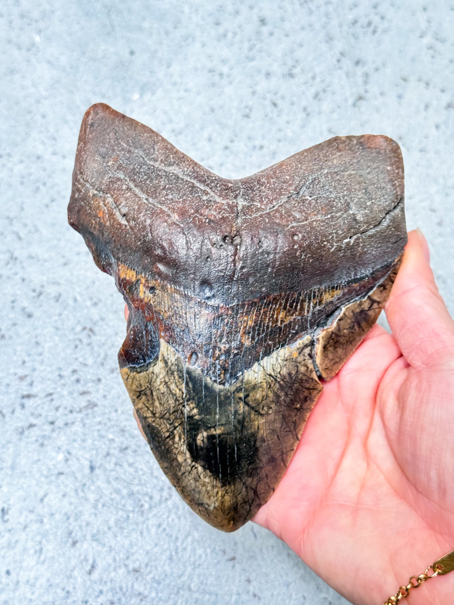 Add a touch of prehistoric wonder to your collection with our Megalodon Fossil Tooth! This stunning tooth boasts a unique tan color from sand and orange color from iron. Its barnacle-like inclusions made of limestone add to its rare beauty. Don't miss out on this one-of-a-kind piece - perfect for any fossil enthusiast!