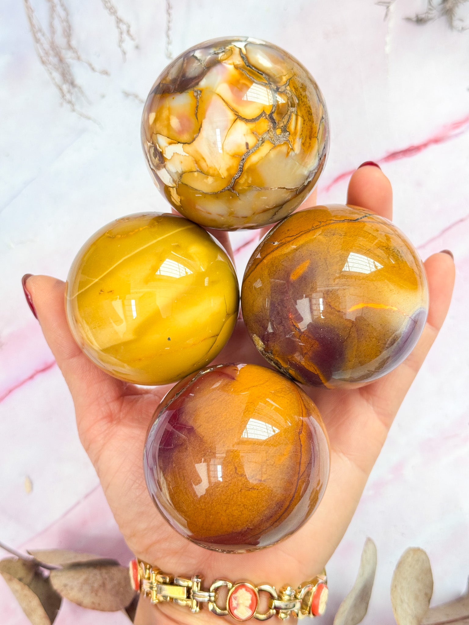 Unlock the magic of Australia with our Mookaite Spheres! These beautifully-patterned spheres showcase vibrant yellows and reds for added wonder. Let the energy of these unique stones inspire you!