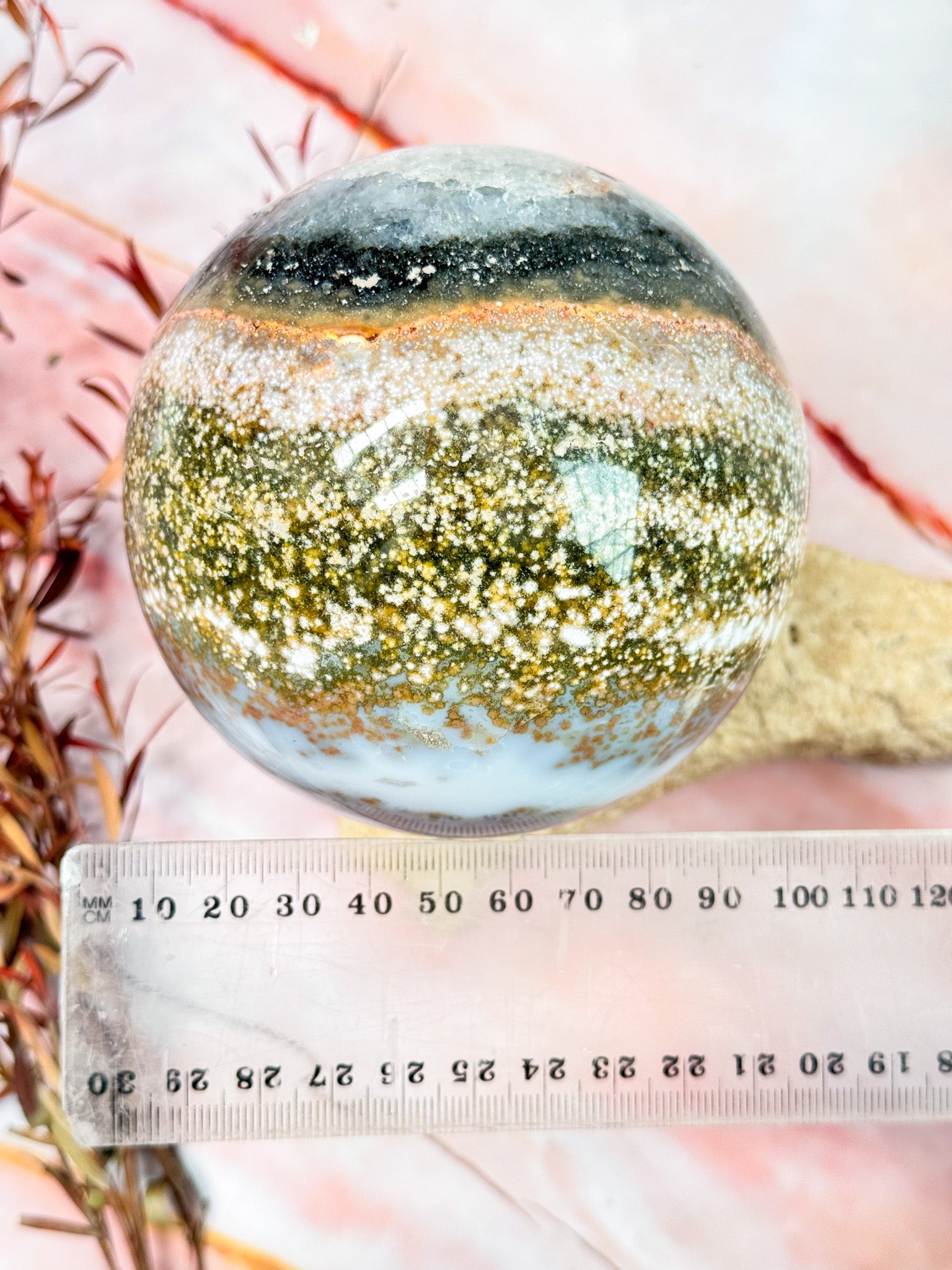 Bring a splash of ocean magic to your space with this playful Orbicular Ocean Jasper Sphere. Its lively green, pink and brown hues dance together in natural swirls and lines, creating a mesmerizing pattern that’s as unique as the sea itself. Perfect for adding a touch of nature’s whimsy to your collection or desk, this sphere invites curiosity and calm in equal measure. Dive into the joyous energy of the ocean with every glance!