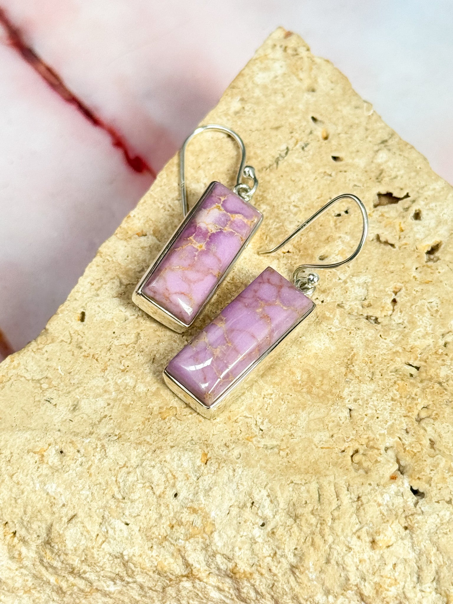 Elevate your everyday sparkle with these enchanting lilac phosphosiderite hanging earrings, where nature's dreamy hues meet timeless elegance. Crafted in sterling silver, these beauties showcase the soft, lavender-toned gemstone's gentle glow—perfect for adding a touch of whimsy to any look. Whether you're channeling mystical vibes or simply craving a pop of colour that feels effortlessly chic, these studs deliver personality without the drama. A little piece of geological magic for your ears.