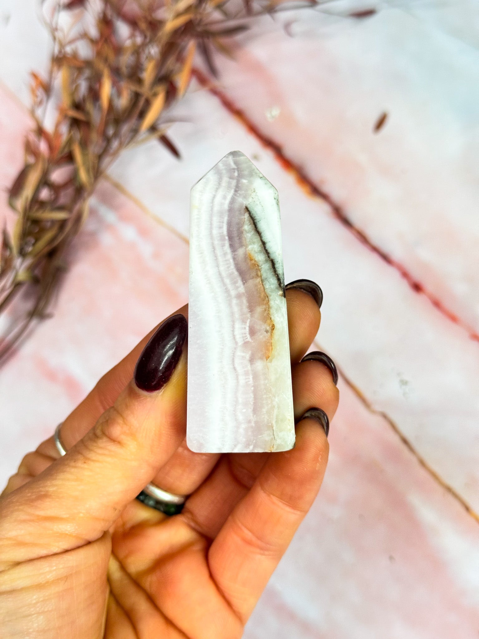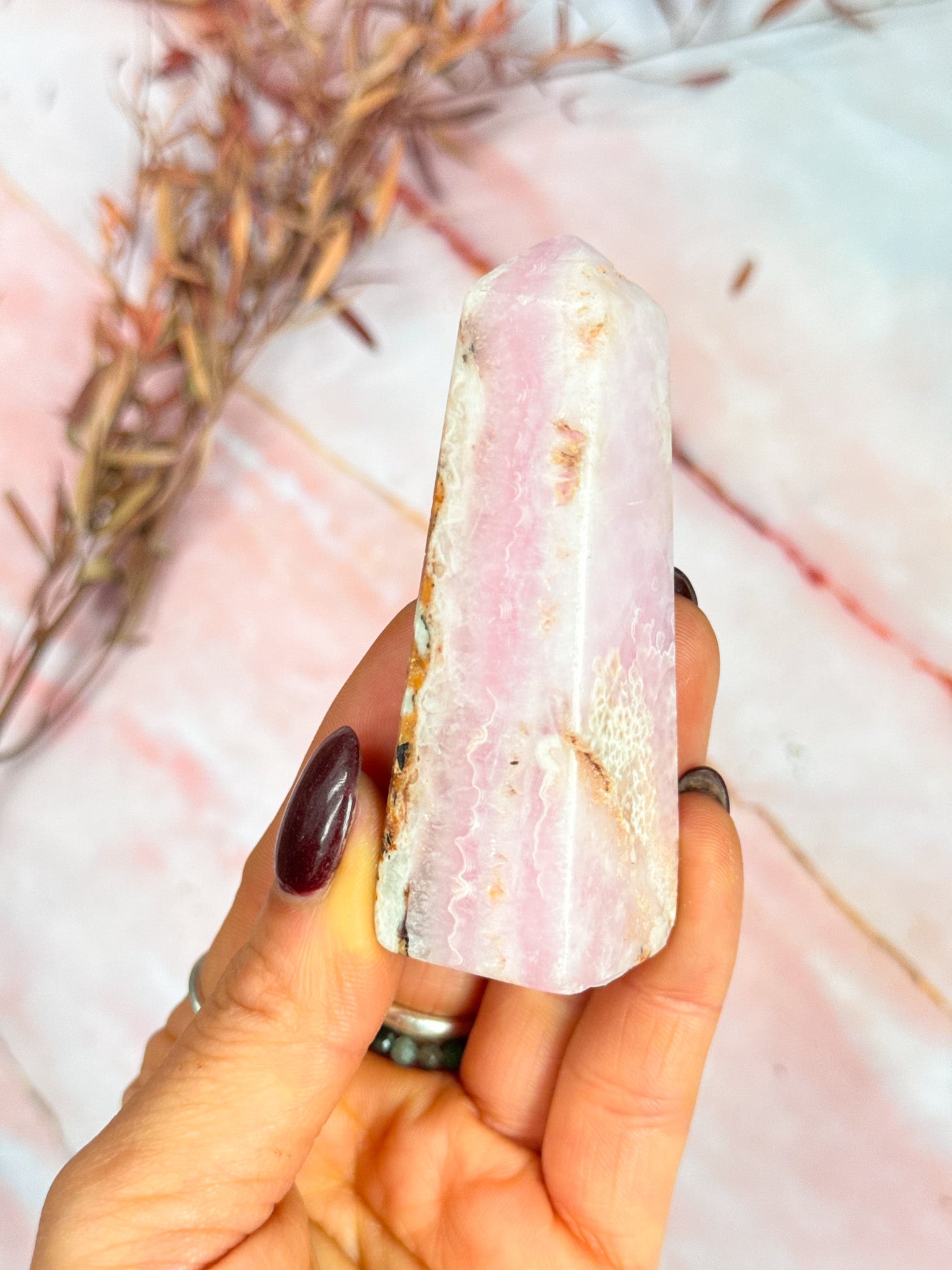 Discover the enchanting beauty of Pink Aragonite Points from Pakistan—nature's delicate masterpiece! These rare banded crystals showcase soft rose hues with mesmerizing striped patterns that seem to dance across each point. Perfect for collectors and crystal enthusiasts, these formations radiate gentle, nurturing energy. Each piece is uniquely sculpted by nature, making it a one-of-a-kind addition to your mineral collection or sacred space. Let these stunning points inspire wonder and bring a touch of geological magic into your world.