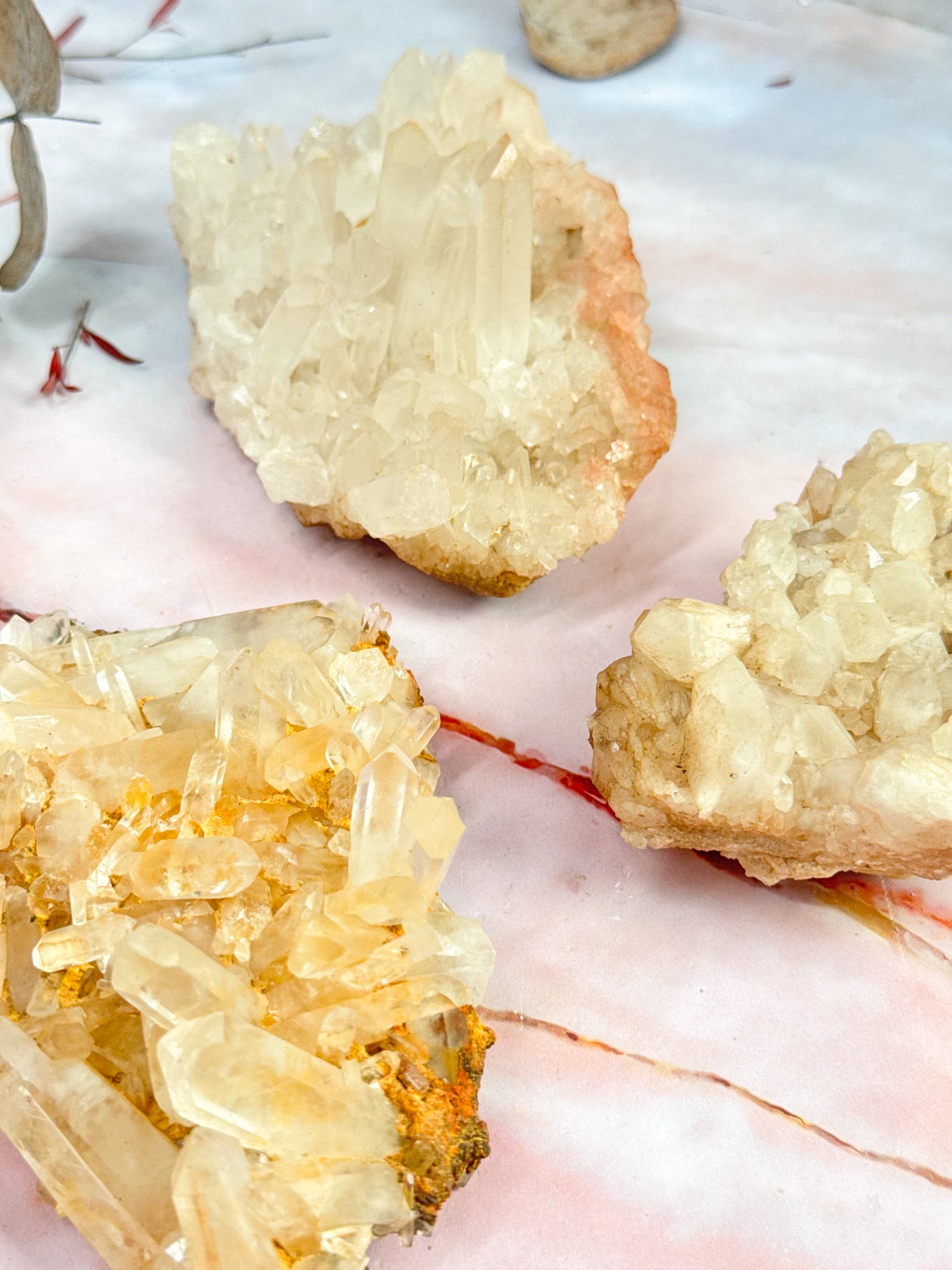 Discover the magic of Madagascar with these stunning quartz clusters, naturally threaded with shimmering golden healer hematite. Each piece is a one-of-a-kind treasure, blending crystalline clarity with warm metallic veins that catch the light beautifully. Perfect for collectors, meditation spaces, or anyone drawn to nature's geometric artistry. These beauties radiate positive energy and make a striking display in any room.