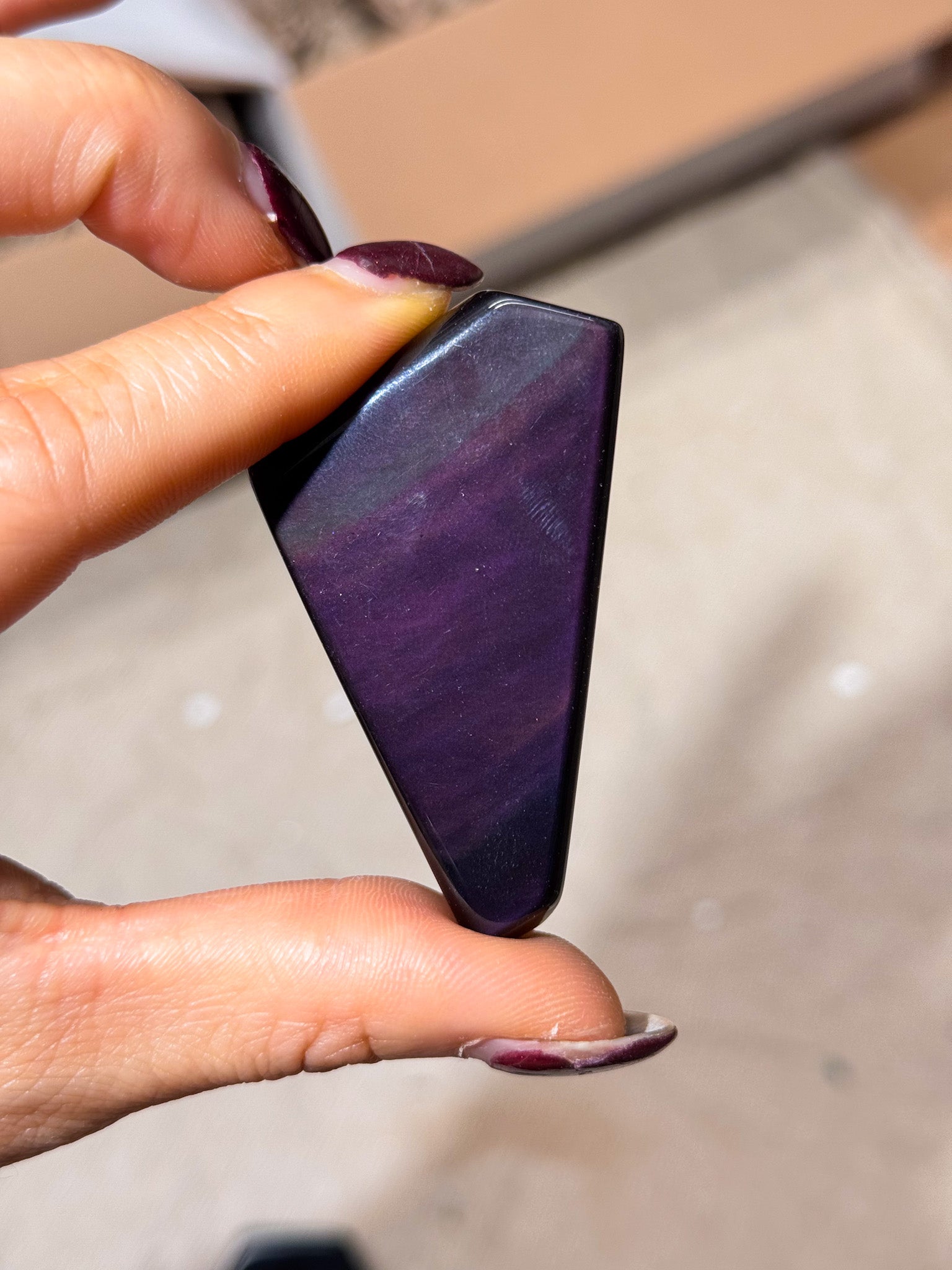 Discover the magic hidden within these stunning rainbow obsidian freeforms! Each piece is a natural work of art, revealing mesmerizing flashes of vibrant blue and purple when caught at just the right angle. Perfect for collectors who love a little mystery and sparkle, these beauties shift and shimmer with every turn. Let the light play across their surfaces and watch the colours dance. A playful addition to any crystal collection that's guaranteed to spark joy and conversation!