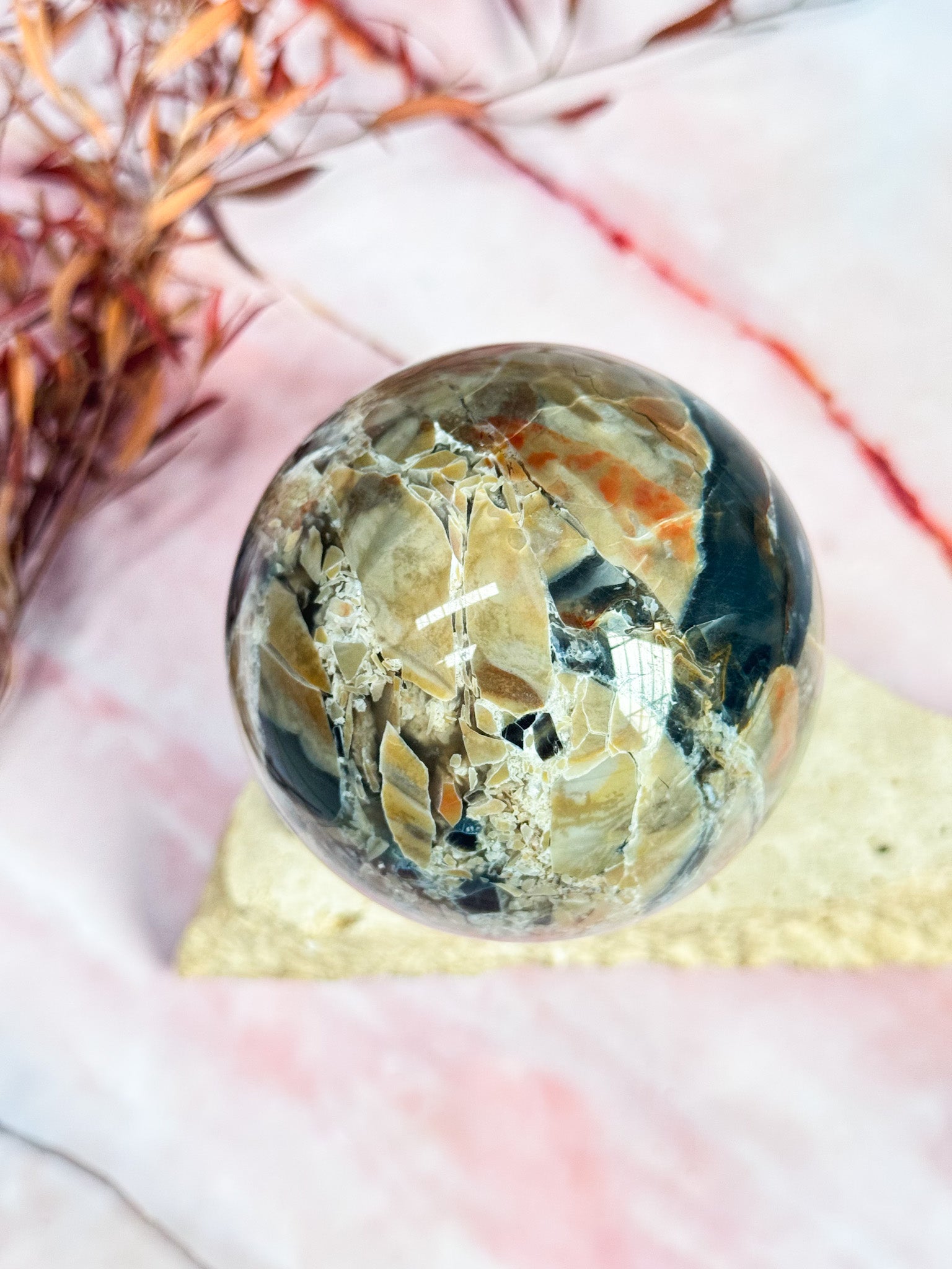 Prepare to be mesmerized! This striking volcanic agate sphere glows with an otherworldly brilliance under UV light, revealing hidden patterns that seem to shift and dance. Each sphere is a one-of-a-kind natural wonder, featuring rich volcanic tones that transform into a luminous spectacle when the lights go down. Perfect for collectors, meditation enthusiasts, or anyone who loves a bit of geological magic. Watch it steal the show at your next gathering—this beauty demands attention!