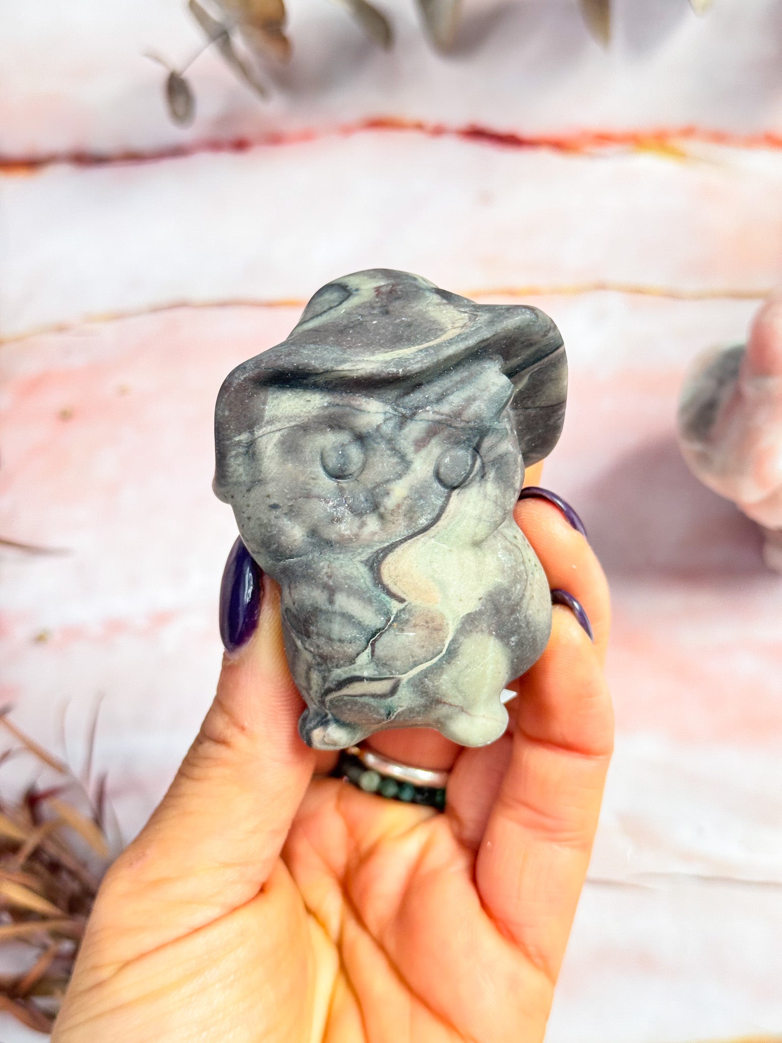 Discover the charm of our Witchy Owl Carvings, each crafted with a playful spirit and carved from a variety of beautiful crystals. These adorable little owls bring a touch of magic and mystery to any space, perfect for adding a whimsical vibe to your collection or gifting to a fellow crystal lover. Let these wise and enchanting companions brighten your day!